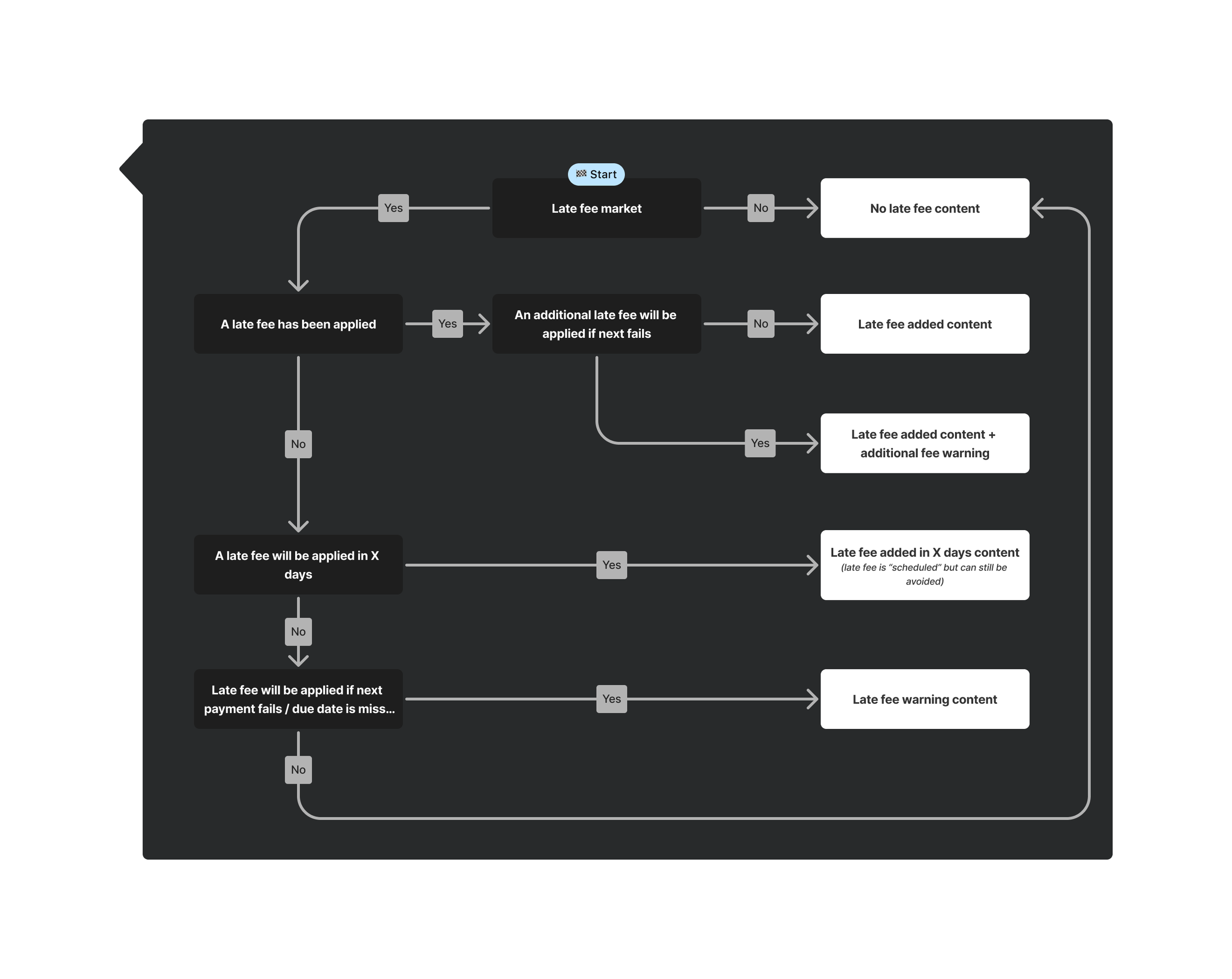 Flexible content framework that you can use to override content blocks based on the product and market: everything from late fee timeline variations to CTAs and FAQs.